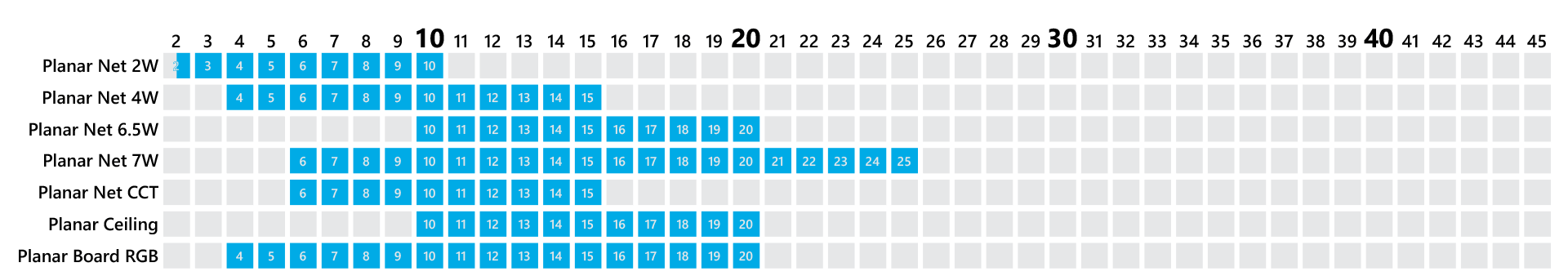 Przedstawione dane tabelaryczne mają charakter informacyjny i nie stanowią oferty handlowej w rozumieniu art. 66 §1 Kodeksu Cywilnego. O szczegóły dostępnych kolorów dla wybranego modułu LED zapytaj handlowców.